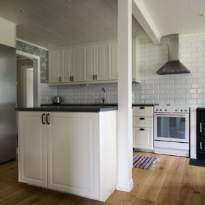 Two bathrooms with shower and toilet. One on each floor. Washing machine in the downstairs bathroom. Kitchen with dishwasher, fridge and freezer, stove and wood-burning stove, etc. A family room upstairs and a family room downstairs. Wifi fiber connection. Swimming spots are available in several places around lake Åsnen. Tingsryd municipality in southern Småland.