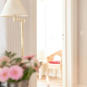 Het huis staat mooi gelegen op een hoogte met uitzicht over de Ronneby rivier. Beneden aan de steiger ligt een roeiboot en je kan er een verfrissende duik nemen.